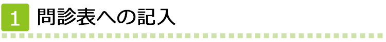 現在の状態などをご記入していただき、保険証と一緒に受付にご提出ください。