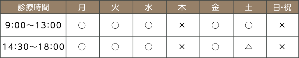△・・・土曜日の午後は14:00~18:00