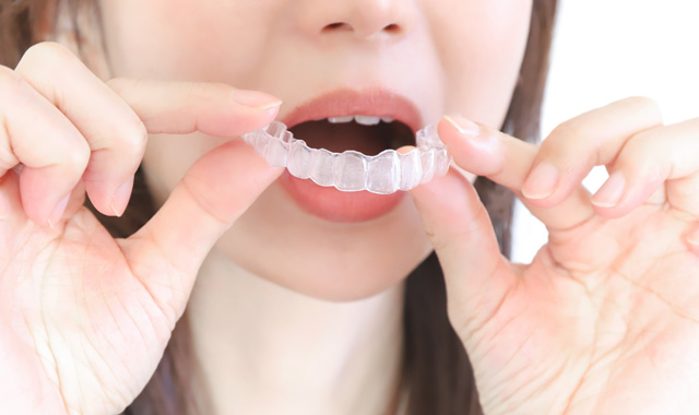 透明なマウスピースを段階的に交換しながら歯並びを整えていく矯正治療です。